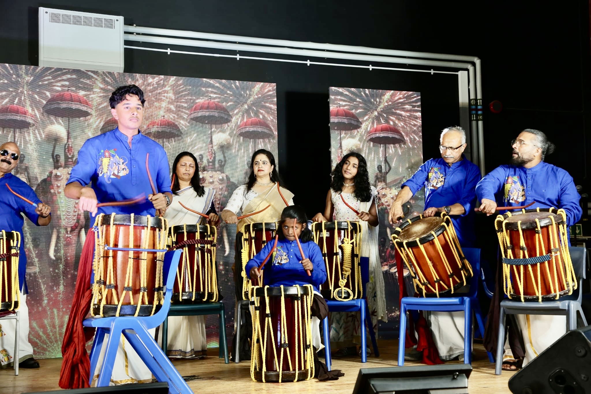 തിരുവോണ ഓര്മ്മകള് ഉണര്ത്തി ഓണപ്പാട്ടോടെ ഹെന്ട്രിന്, ജെസ്ലിന് വിജോയും, തേജിനും ചേര്ന്ന് ഓണാഘോഷ കലാവിരുന്നിനു തുടക്കമിട്ടപ്പോള്, തട്ടു പൊളിപ്പന് ഗാനങ്ങളുമായി ടാനിയാ അനൂപും, ഡോ. ആരോമലും വേദി കയ്യടക്കി. പോപ്പ് ഗാനവുമായി എറിന് ജോണ് സദസ്സിന്റെ കയ്യടി ഏറ്റുവാങ്ങി. മരിയ ടോം, ഇവ അന്നാ ടോം, ആന് മേരി ജോണ്സണ്, നിസ്സി ഗിബി, ക്രിസ് ബോസ്, ഏഞ്ചല് മേരി ജോണ്സണ്, ആന്റണി ടോം എന്നിവര് വേദിയില് സംഗീതസാന്ദ്രത പകര്ന്നു.