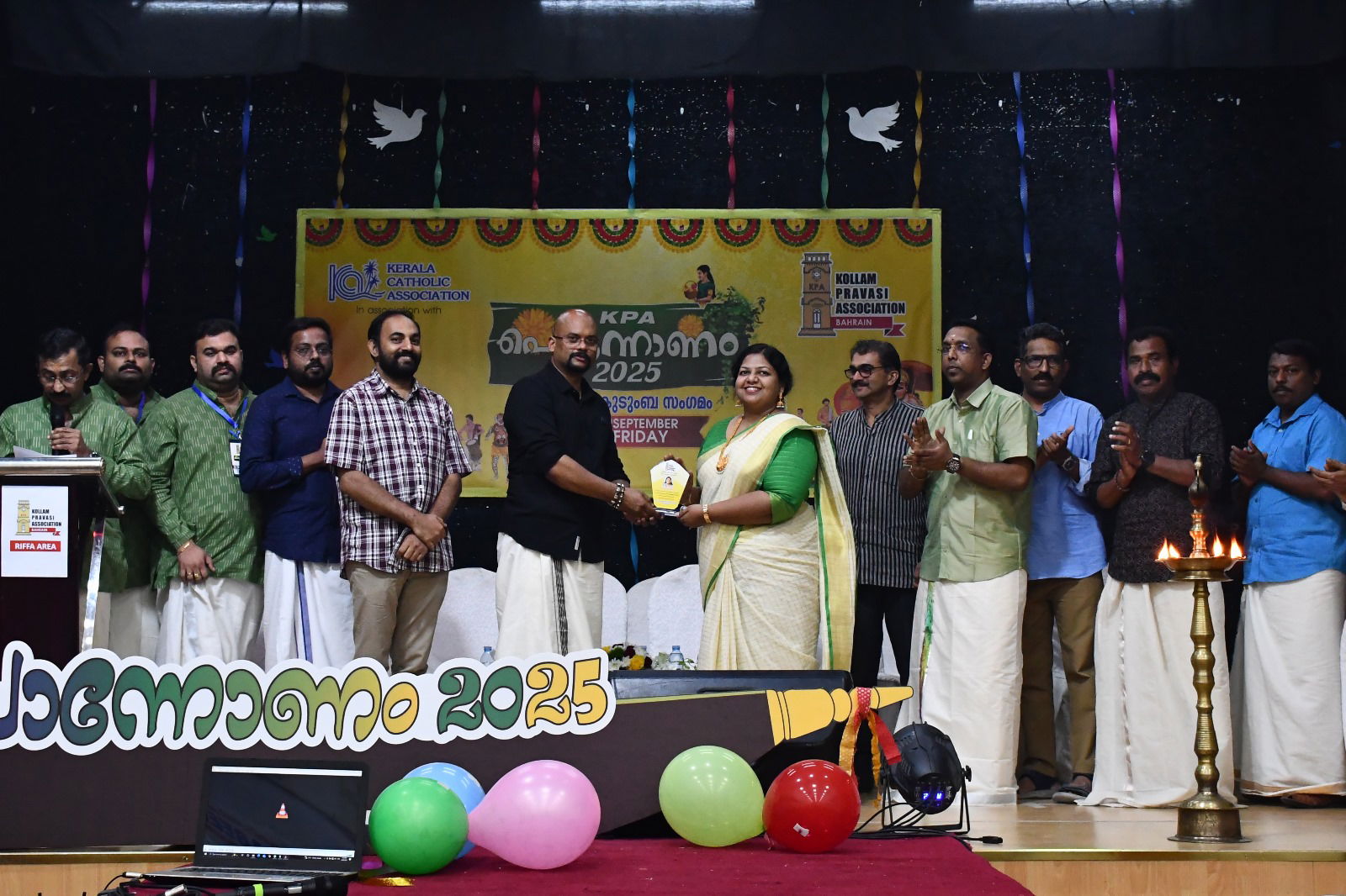 കെ.പി.എ പ്രസിഡന്റ് അനോജ് മാസ്റ്റര് ഉദ്ഘാടനം ചെയ്ത കെ പി എ പൊന്നോണം 2025 ചടങ്ങില് ബഹറിനിലെ പ്രമുഖ മാധ്യമപ്രവര്ത്തകനും ഫോര് പി എം ന്യൂസ് എക്സിക്യൂട്ടീവ് എഡിറ്റര് കൂടിയായ പ്രദീപ് പുറവങ്കര മുഖ്യഅതിഥിയായും കെ. സി. എ ജനറല് സെക്രട്ടറി വിനു ക്രിസ്ടി,, ബഹ്റൈന് മീഡിയ സിറ്റി ചെയര്മാനും സാമൂഹിക പ്രവര്ത്തകനുമായ ഫ്രാന്സിസ് കൈതാരത്ത് എന്നിവര് വിശിഷ്ട അതിഥിയായി പങ്കെടുത്തു. കേരളീയ പാരമ്പര്യവും സംസ്കാരവും വിദേശമണ്ണില് നിലനിര്ത്താന് ഇത്തരം പരിപാടികള് വലിയ പങ്കുവഹിക്കുന്നുണ്ടെന്നും അതുപോലെ തന്നെ ഏരിയ അംഗങ്ങള് തമ്മില് പരിചയപ്പെടുവാനും, ബന്ധങ്ങള് കൂടുതല് ദൃഢമാക്കുവാനും ഉള്ള അവസരം ഇങ്ങനെയുള്ള ആഘോഷ പരിപാടികള് സഹായിക്കുമെന്നും കെ പി എ പ്രസിഡന്റ് പറഞ്ഞു.