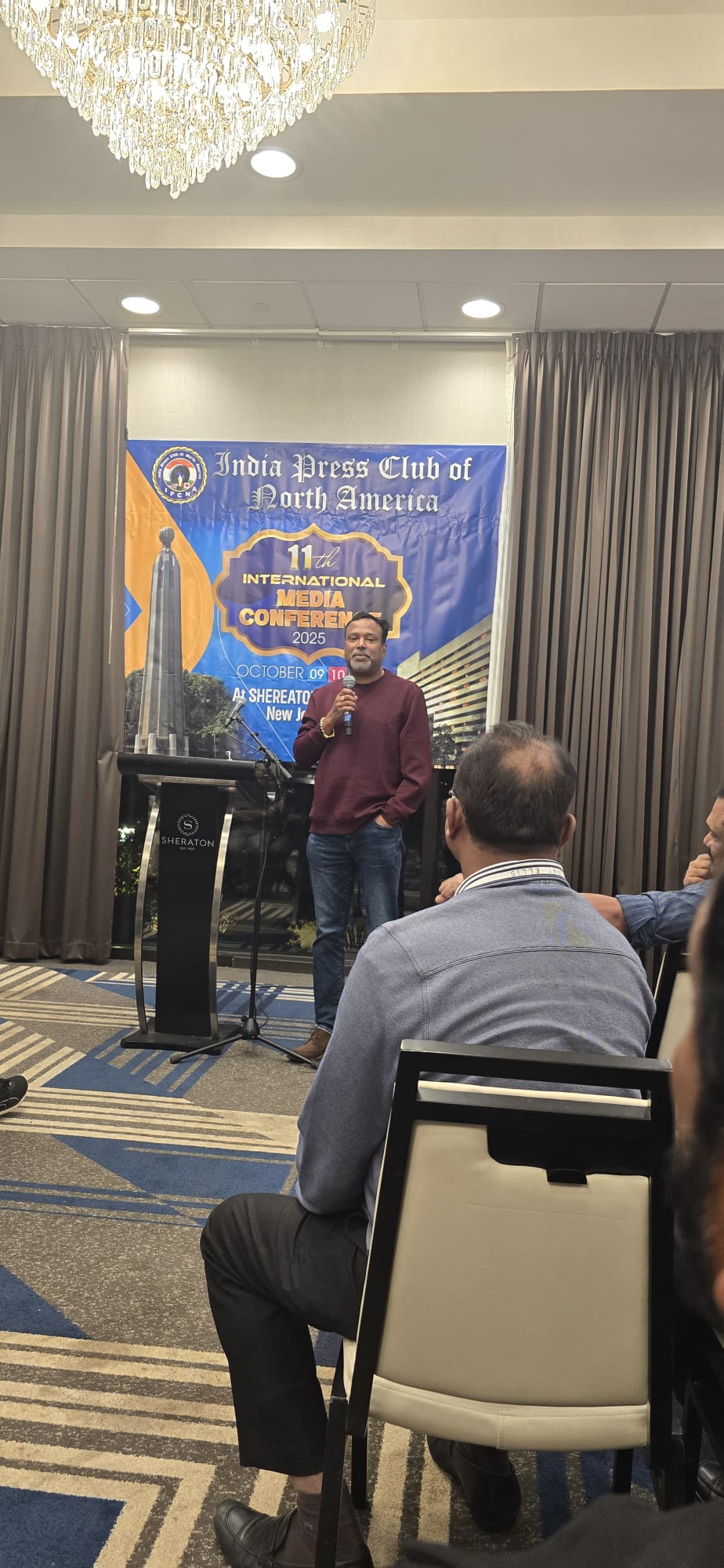 എഡിസൺ, ന്യു ജേഴ്സി: ഭിന്നതകളോ പരസ്പരം പാര വായ്പൊ ഇല്ലാതെ ഇന്ത്യ പ്രസ് ക്ലബ് ഓഫ് നോർത്ത് അമേരിക്ക, രണ്ടു പതിറ്റാണ്ടിലേറെയായി പ്രവർത്തിക്കുന്നുവെങ്കിൽ അതിനു പ്രധാന കാരണം നിങ്ങൾ നാട്ടിൽ നിന്ന് വളരെ വർഷങ്ങൾക്ക് മുൻപേ ഇവിടെ വന്നതാണെന്നു വി.കെ. ശ്രീകണ്ഠൻ എം. പി. ഭിന്നതകൾ ഇല്ലാത്തത് എല്ലാ മലയാളികൾക്കും മാതൃകയാകേണ്ടതാണ്. കേരളം വിട്ട് വന്നപ്പോൾ പരസ്പരം സൗഹൃദമായി. മറ്റുള്ളവരെ അംഗീകരിക്കാനുള്ള മനസ്സായി-ഇന്ത്യ പ്രസ് ക്ലബിന്റെ പതിനൊന്നാമത് അന്താരാഷ്ട്ര കോൺഫറൻസിന് തുടക്കം കുറിച്ച് എഡിസണിലെ ഷെറാട്ടണിൽ സംഘടിപ്പിച്ച 'മീറ്റ് ആൻഡ് ഗ്രീറ്റ്' സംഗമത്തിൽ പ്രസംഗിക്കുകയായിരുന്നു അദ്ദേഹം.