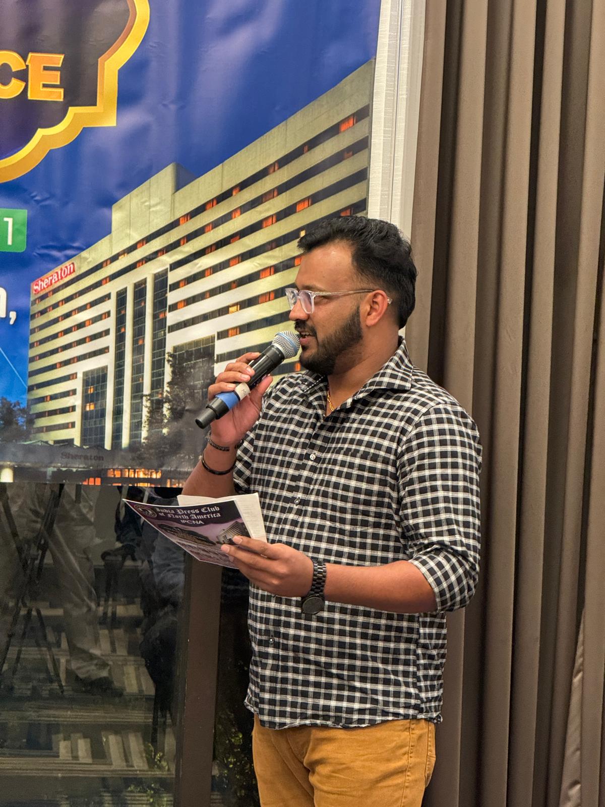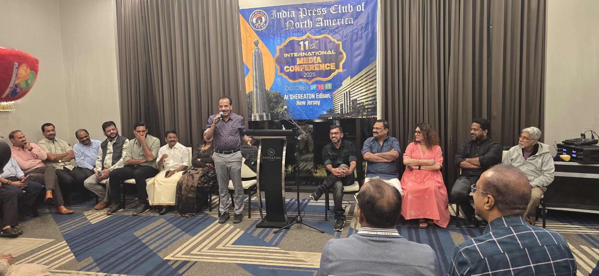 പ്രസ് ക്ലബ് നാഷണൽ പ്രസിഡന്റ് സാമുവൽ ഈശോ (സുനിൽ ട്രൈസ്റ്റാർ) ആമുഖ പ്രസംഗം നടത്തി. പുതിയ സാഹചര്യത്തിൽ അതിഥികൾക്ക് വിസ കിട്ടുവാൻ ഉണ്ടായ ബുദ്ധിമുട്ട് അദ്ദേഹം ചൂണ്ടിക്കാട്ടി. ഈ പത്രക്കാർ വന്നത് കൊണ്ട് അമേരിക്കക്ക് എന്തു ഗുണം എന്ന് വിശദീകരിക്കേണ്ടി വന്നു.