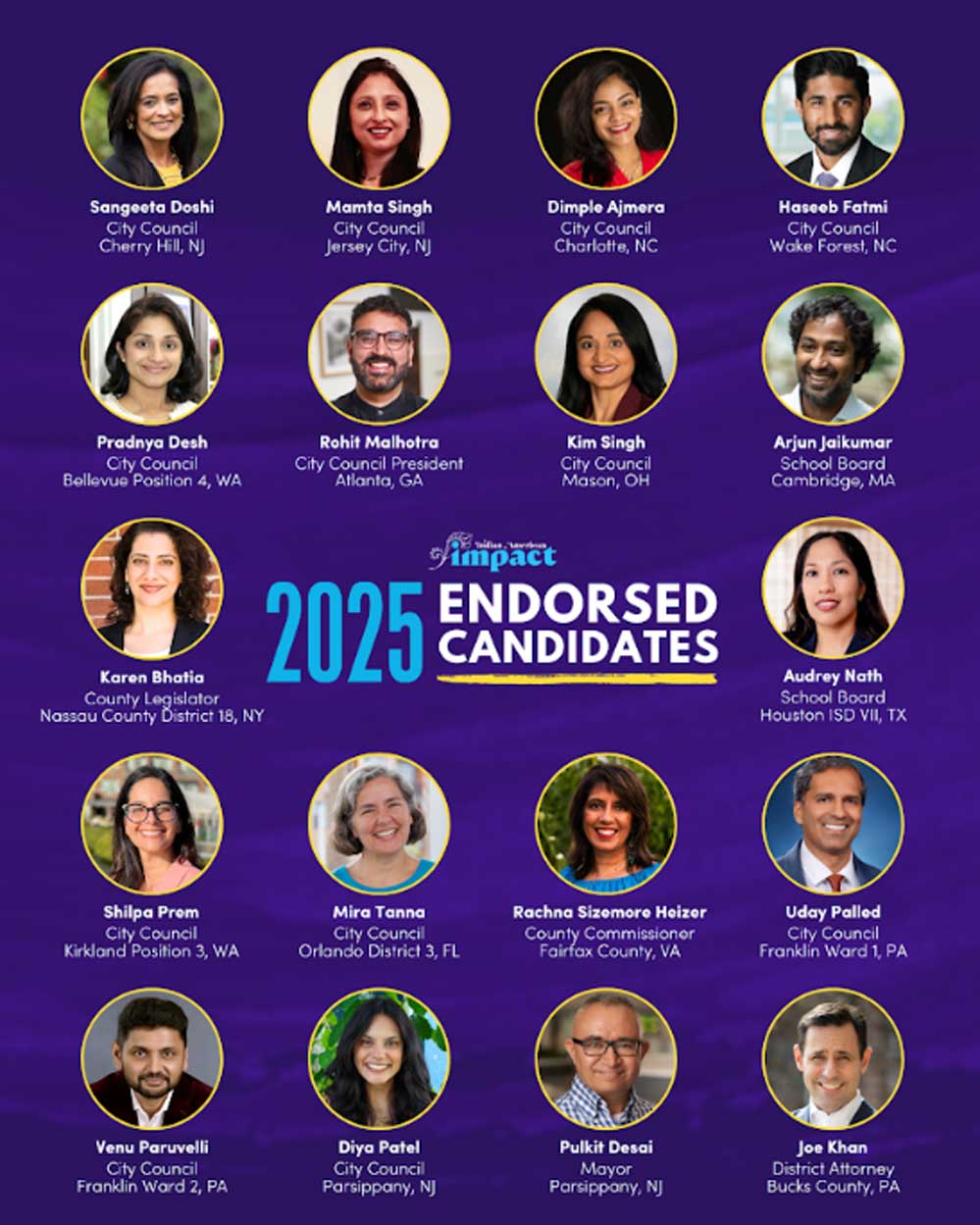 ഗസല ഹാഷ്മി-ലഫ്റ്റനന്റ് ഗവര്‍ണര്‍, വെര്‍ജിനിയ, സോഹ്‌റാന്‍ മംമ്ദാനി- മേയര്‍, ന്യൂയോര്‍ക്ക് സിറ്റി,