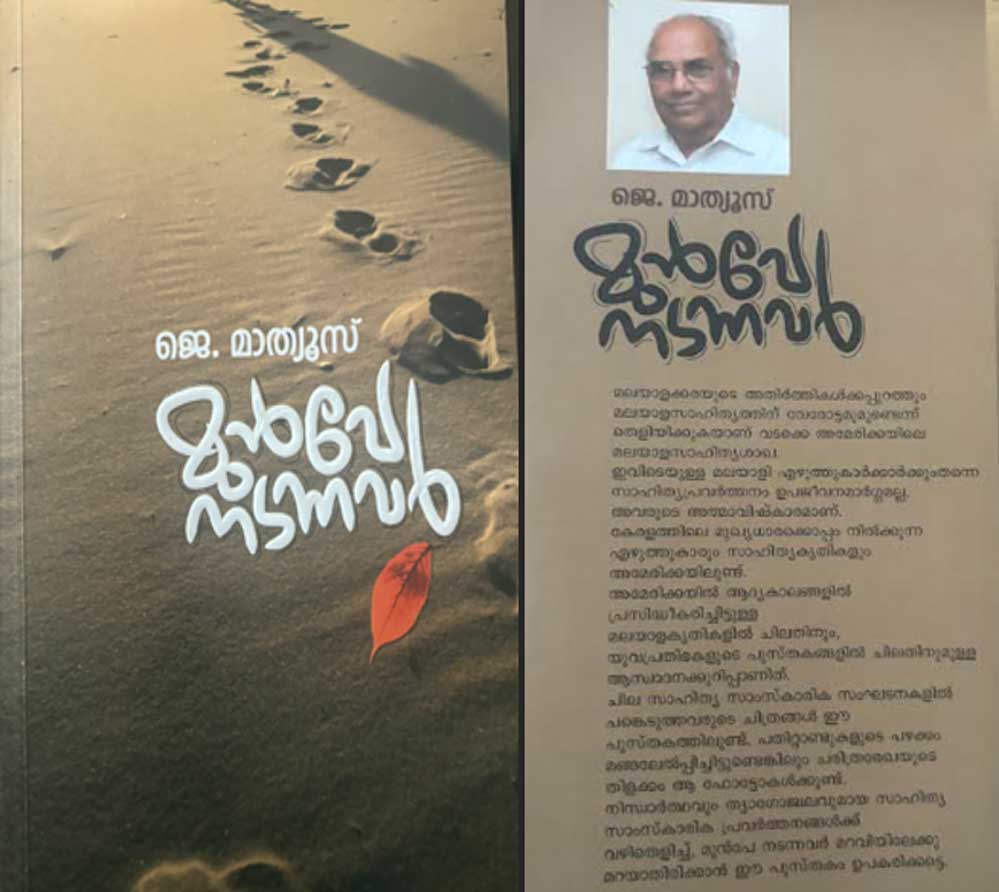അമേരിക്കൻ മലയാളിയും എഴുത്തുകാരനും, ഗ്രന്ഥകാരനും, പത്രപ്രവർത്തകനും, അധ്യാപകനുമായ ശ്രീ ജെ മാത്യുസ് രചിച്ച മുൻപേ നടന്നവർ എന്ന കൃതി അമേരിക്കൻ മലയാള സാഹിത്യ ചരിത്രത്തിലേക്കുള്ള ഒരു ഏടാണ്. ഇവിടത്തെ എഴുത്തുകാരുടെ പുസ്തകങ്ങൾക്ക് അദ്ദേഹം എഴുതിയ അവതാരികയുടെ സമാഹാരമാണിത്. ഒപ്പം ആ എഴുത്തുകാരുടെ പുസ്തകങ്ങളിൽ നിന്നുമുള്ള ഒന്നോ രണ്ടോ രചനകൾ കൂടി ഉൾപ്പെടുത്തിയിരിക്കുന്നു. സഹൃദയ ലോകത്തിനു ഈ പുസ്തകം നൽകുന്ന അറിവ് അമേരിക്കൻ മലയാളസാഹിത്യത്തെ പുറം ലോകവുമായി ബന്ധിപ്പിക്കാൻ സഹായിക്കും.